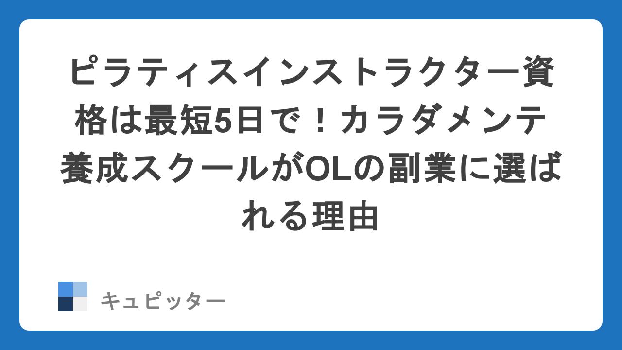 「いつか」と思いながら今の仕事を続ける1年と、最短5日間で資格を取り、週末にはピラティス講師として誰かの笑顔を作っている1年。どちらがあなたにとって輝かしい未来でしょうか。