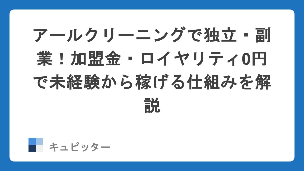 - アールクリーニング: 店舗不要。加盟金・ロイヤリティ0円。集客は本部が完全サポート。