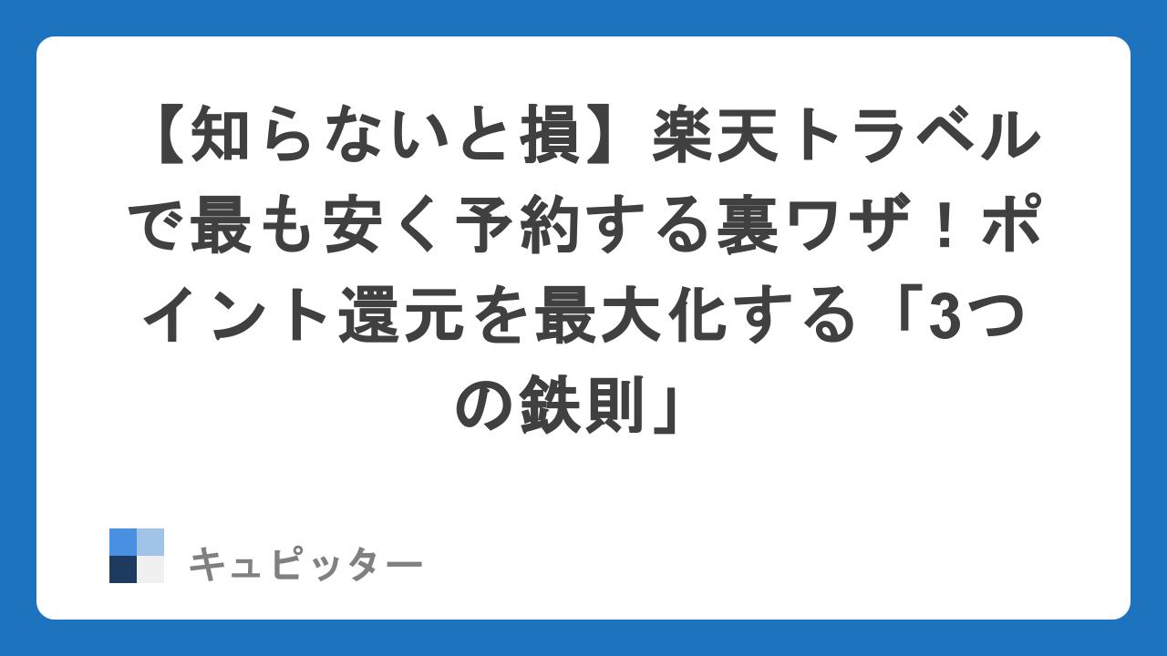 【知らないと損】楽天トラベルで最も安く予約する裏ワザ!ポイント還元を最大化する「3つの鉄則」