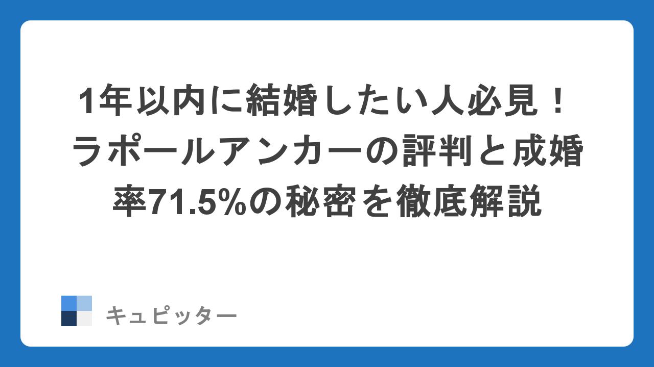 今、そんな「効率」と「確実性」を求める婚活者たちの間で注目を集めているのが、結婚相談所『ラポールアンカー』。今回は、なぜここが「婚活難民の救世主」と呼ばれているのか、その圧倒的な強みを徹底解剖します。