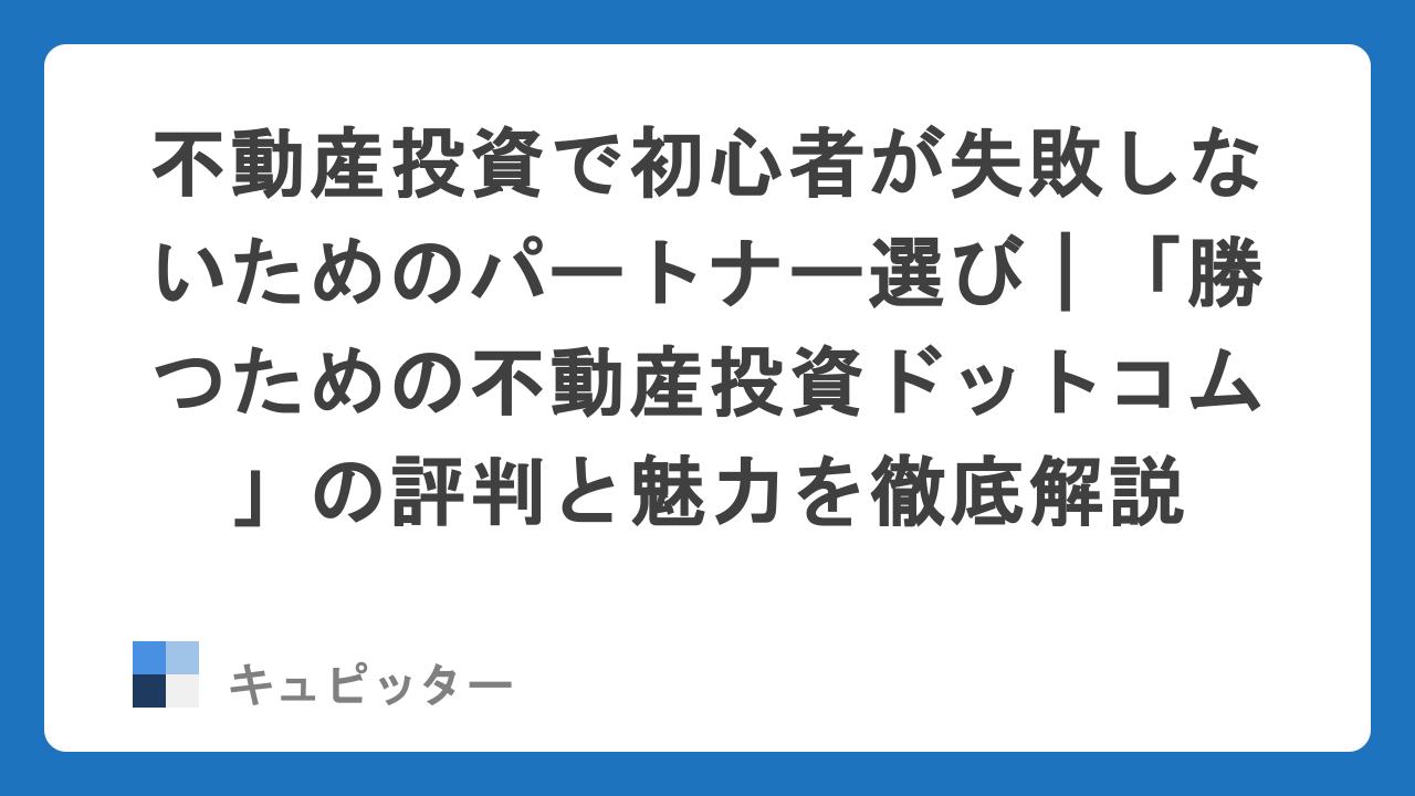 こんにちは、キュピッター編集部です。今回は、忙しい会社員や公務員の方々の間で「失敗しないための登竜門」として注目を集めているサービス、「勝つための不動産投資ドットコム」を徹底解説します。