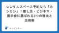 「駅近なら狭くてもOK」「古くても清潔ならOK」など、ターゲットを絞ることで、どんなスペースでも需要が見つかるのがレンタルスペースの面白いところです。