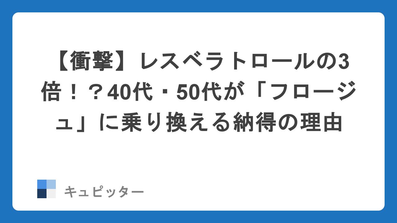 【衝撃】レスベラトロールの3倍!?40代・50代が「フロージュ」に乗り換える納得の理由