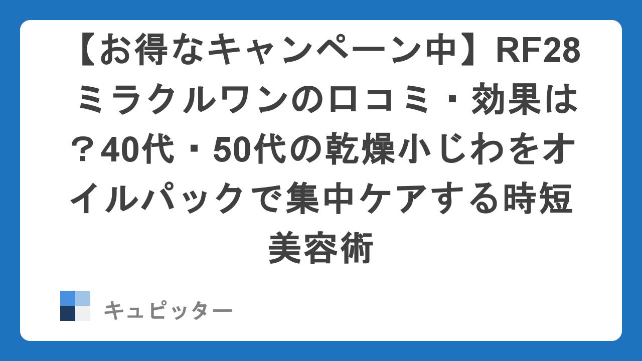 【お得なキャンペーン中】RF28 ミラクルワンの口コミ・効果は?40代・50代の乾燥小じわをオイルパックで集中ケアする時短美容術