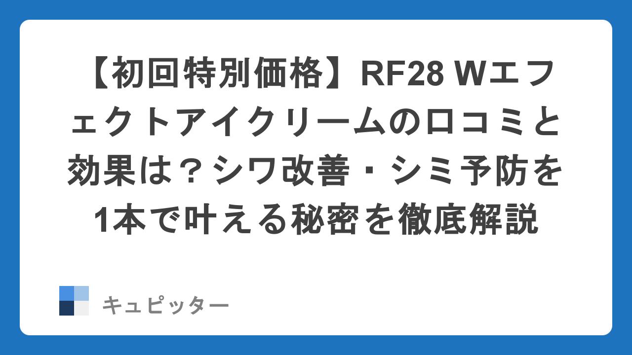 今回は、創業130年以上の歴史を持つ老舗の知恵が詰まった「RF28 Wエフェクトアイクリーム」をご紹介します。今なら公式サイト限定の初回特別価格キャンペーンも実施中。しかも定期便の回数縛りがないため、まずは自分の肌で試してみたいという方にもぴったりのチャンスです。