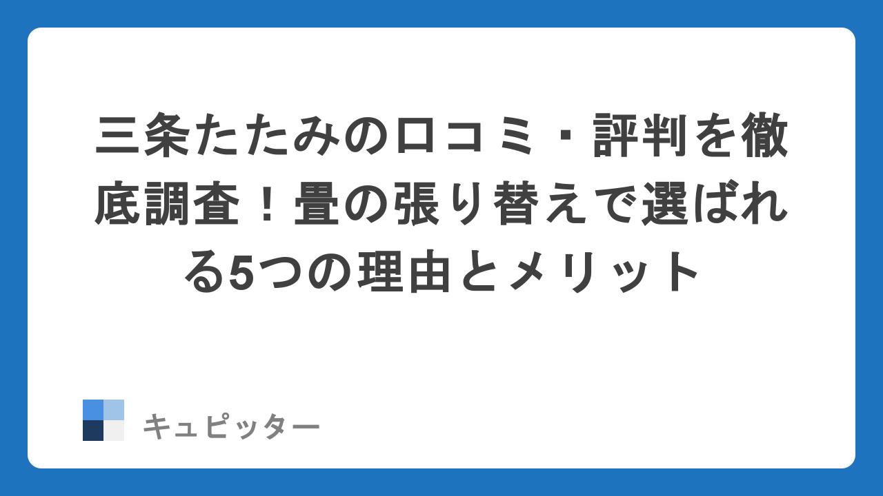 そこで今回は、創業90年の歴史を誇り、メディアでも多数紹介されている「三条たたみ」を徹底調査しました。今なら公式サイトで期間限定のキャンペーンが実施されていることもあるため、お得に張り替えたい方はまず冒頭からチェックしてみてください。