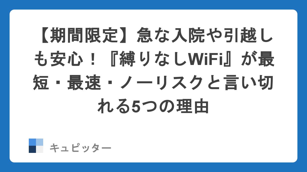 「工事不要」「解約金不要」「端末代不要」の3拍子が揃っている『縛りなしWiFi』は、現代の柔軟なライフスタイルに最もマッチした選択肢と言えます。