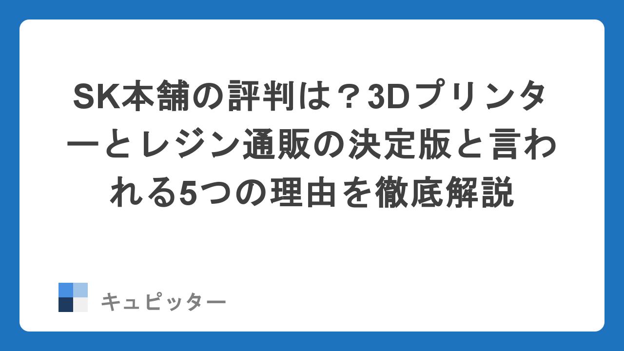 今回は、3Dプリンターとレジンの総合通販「SK本舗」が選ばれる理由と、後悔しないための活用術を徹底解説します。