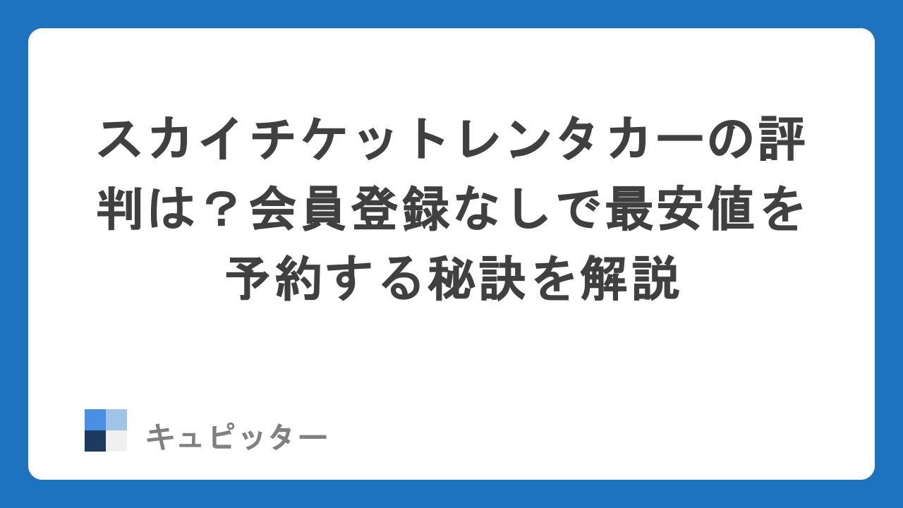 今回は、そんな「賢く、効率的に車を借りたい」という方にぴったりの予約サイト「skyticket(スカイチケット)レンタカー」をご紹介します。会員登録の手間なく、最短ルートで最安値を見つけるための秘訣をまとめました。
