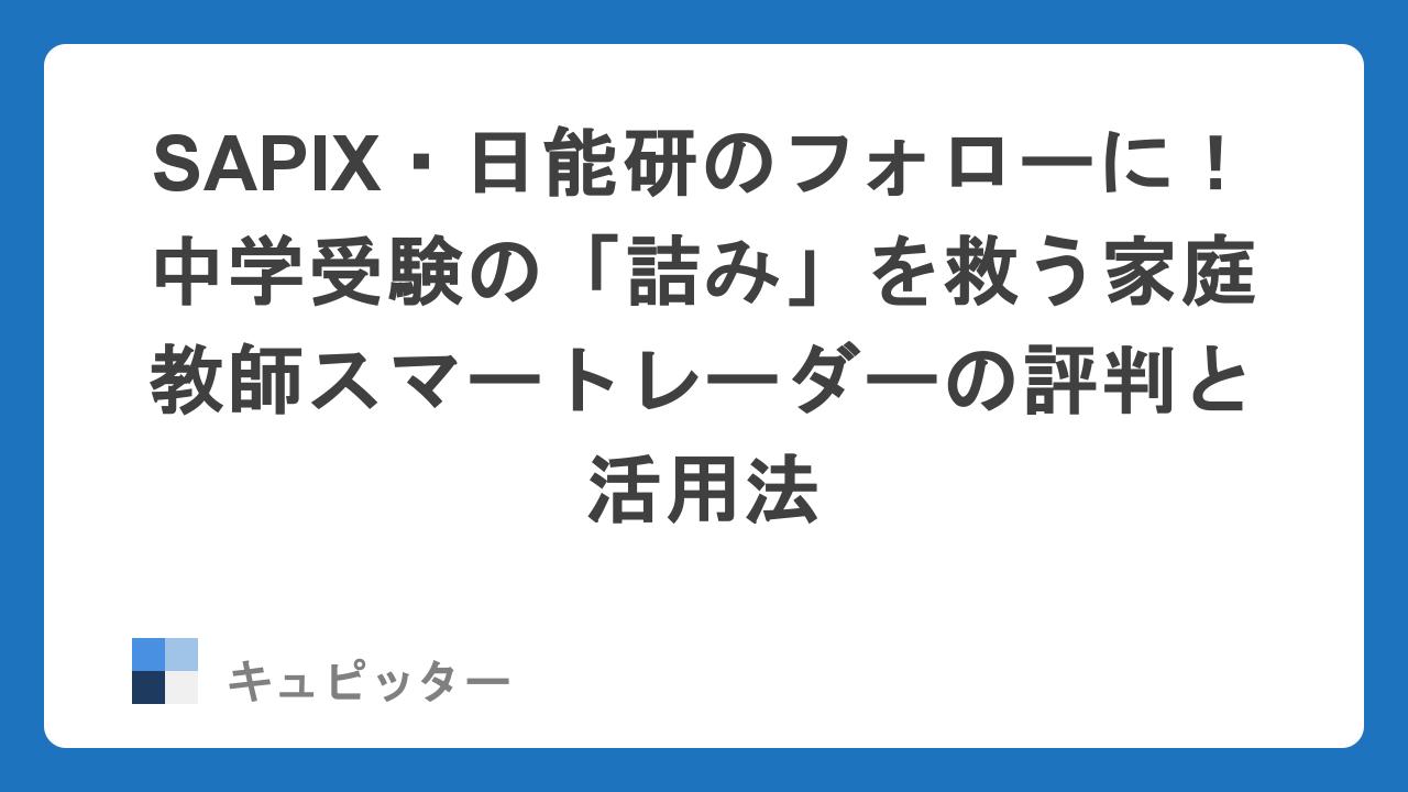 そこで今回は、難関校合格を目指す親御さんの間で今、賢い選択肢として注目されている家庭教師マッチングサービス「スマートレーダー」について詳しく解説します。