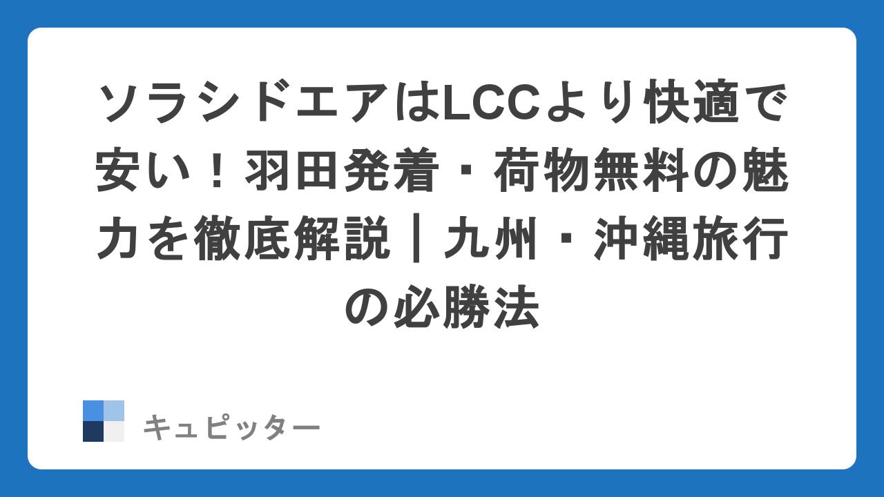 ソラシドエアはLCCより快適で安い!羽田発着・荷物無料の魅力を徹底解説|九州・沖縄旅行の必勝法