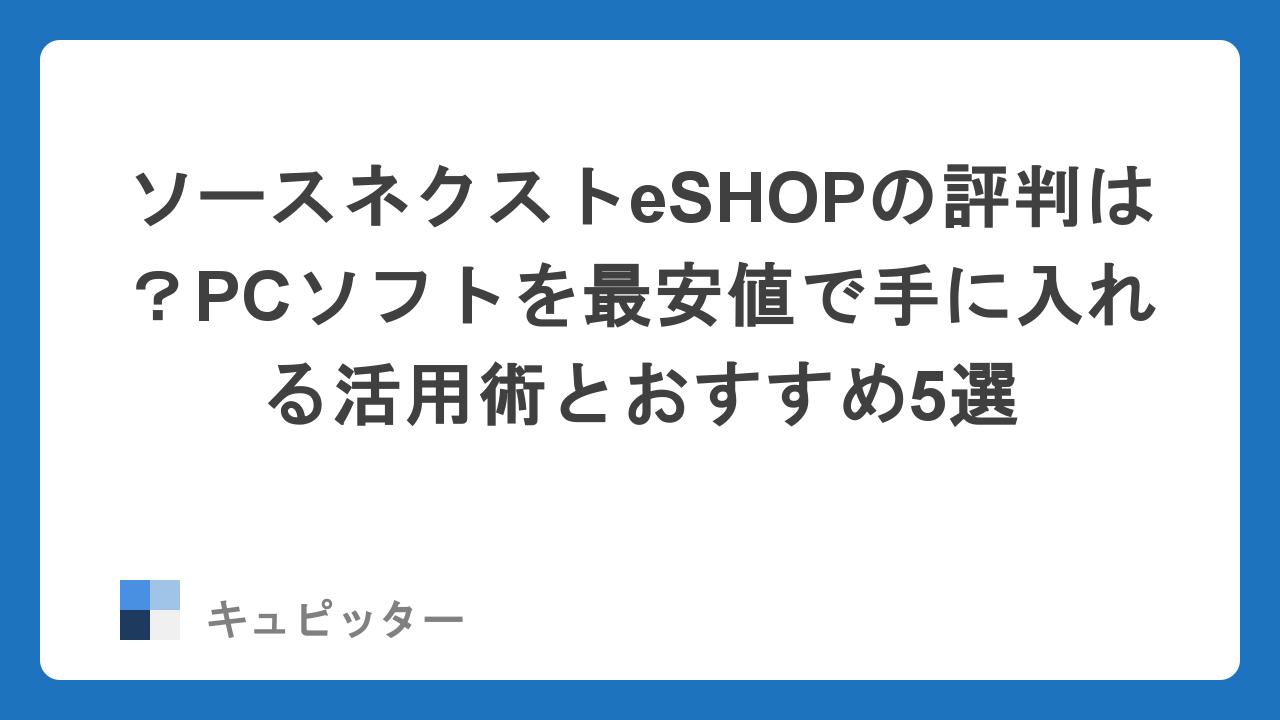 こんにちは、キュピッター編集部です。今回は、そんなコストの悩みを一気に解決し、最新ツールを最も賢く手に入れるための「知る人ぞ知る聖地」、ソースネクストeSHOPの活用術を徹底解説します。