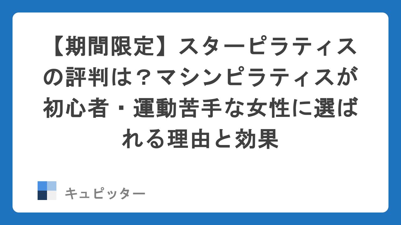 なかでも、今回ご紹介する「スターピラティス」は、運動が苦手な方や体が硬い方にこそ選ばれているスタジオです。今なら、期間限定の「初心者専用・体験キャンペーン」も実施中!自分を変えたいけれど一歩踏み出せなかったという方は、ぜひ最後までチェックしてみてください。