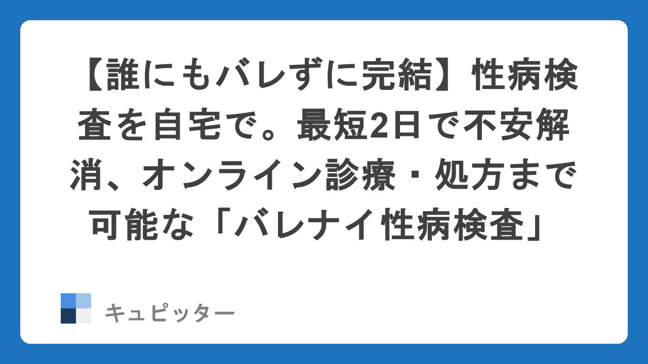 - バレナイ性病検査: 医療機関監修の高精度な検査に加え、「自宅での治療完結」という唯一無二のアフターケアが備わっています。