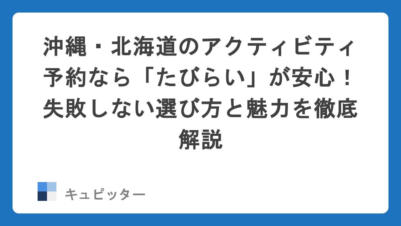 沖縄・北海道旅行のアクティビティ選びで「絶対に失敗したくない」あなたへ