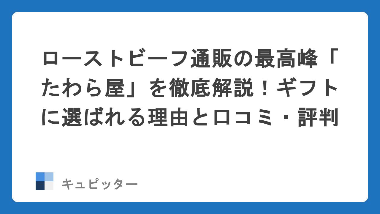 ローストビーフ通販の最高峰「たわら屋」を徹底解説!ギフトに選ばれる理由と口コミ・評判