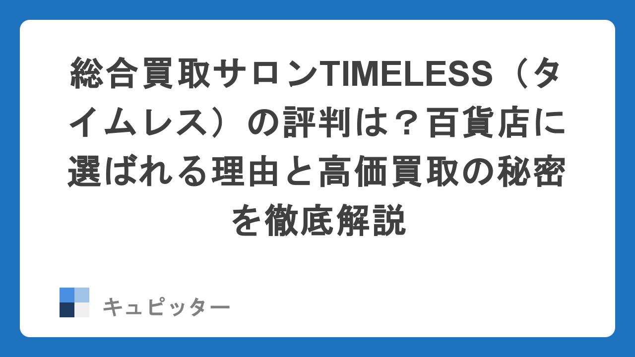 そんな不安や迷いを感じている方にこそ知っていただきたいのが、総合買取サロン「TIMELESS(タイムレス)」です。