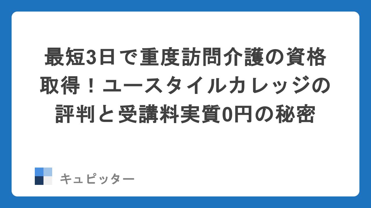 今回は、忙しい方でも無理なく「手に職」をつけられ、現場で圧倒的に求められるスキルが身につく「ユースタイルカレッジ」の重度訪問介護従業者養成研修(統合課程)をご紹介します。