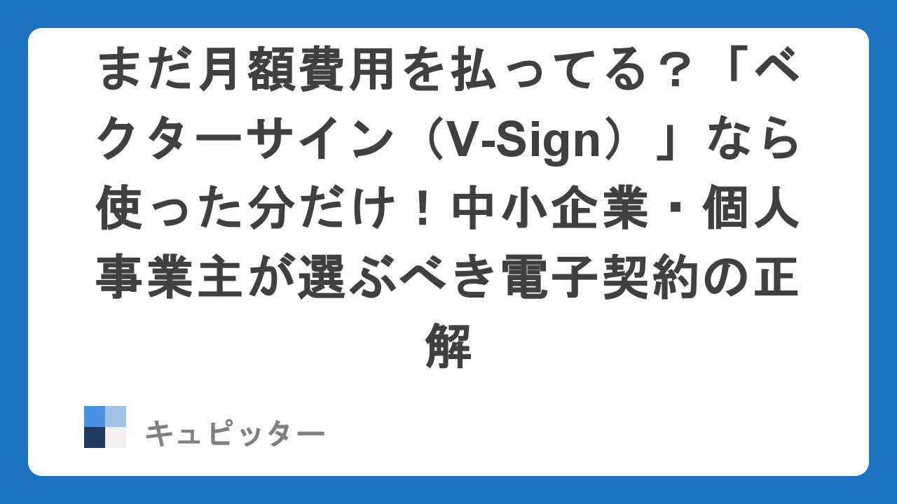 まだ月額費用を払ってる?「ベクターサイン(V-Sign)」なら使った分だけ!中小企業・個人事業主が選ぶべき電子契約の正解