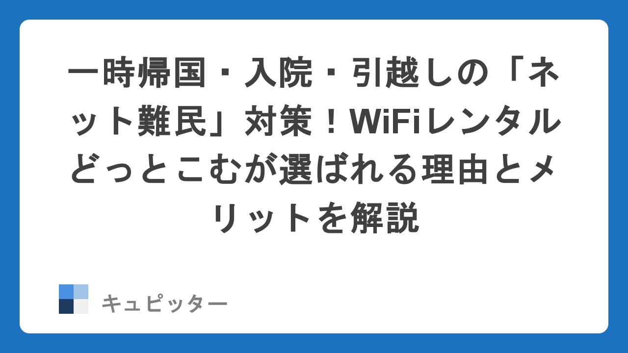 ネット環境がないストレスを我慢するよりも、賢くレンタルして快適さを手に入れるのが正解と言えそうです。