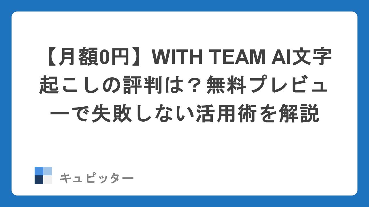 「WITH TEAM AI文字起こし」なら、初期費用も月額料金もかかりません。まずは公式サイトにアクセスして、お手持ちの音源で「無料プレビュー」を試してみてください。そのスピードと精度に、きっと驚くはずです。